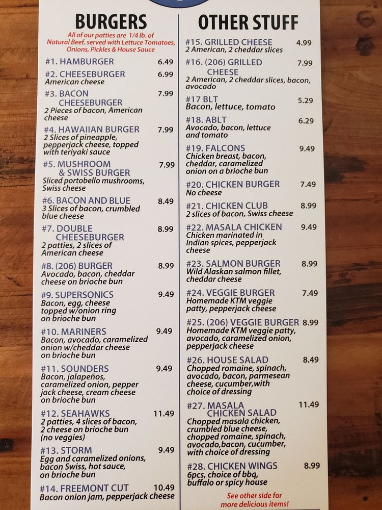 Welcome to 206 Burger Company, a culinary gem nestled in Seattle's vibrant neighborhood! This burger haven specializes in crafting delicious burgers, all made with 1/4 lb natural beef patties. Their standout menu includes the 206 Burger, topped with fresh avocado and bacon, and the indulgent Bacon & Blue, featuring crumbled blue cheese. For those preferring a meatless option, the 206 Veggie Burger impresses with its homemade patty and flavorful toppings.